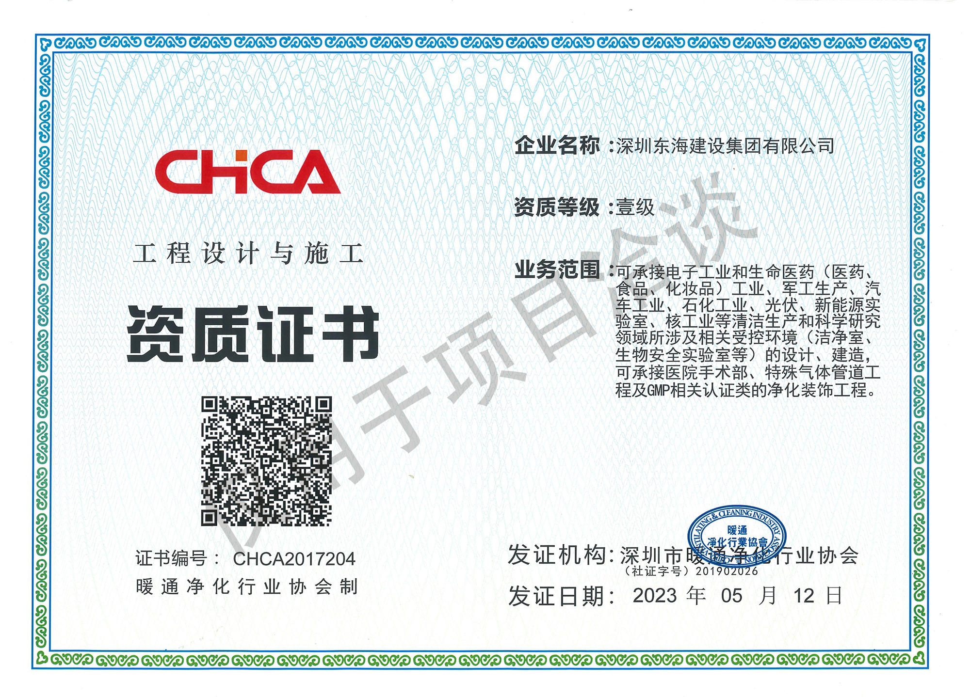 暖通凈化工程設計施工資質證書